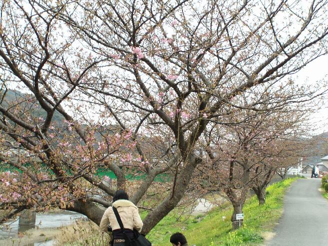 菜の花は見頃でしたが、河津桜は現在原木が三分咲き、河津川沿いの桜並木は、一、二分咲きぐらいです。